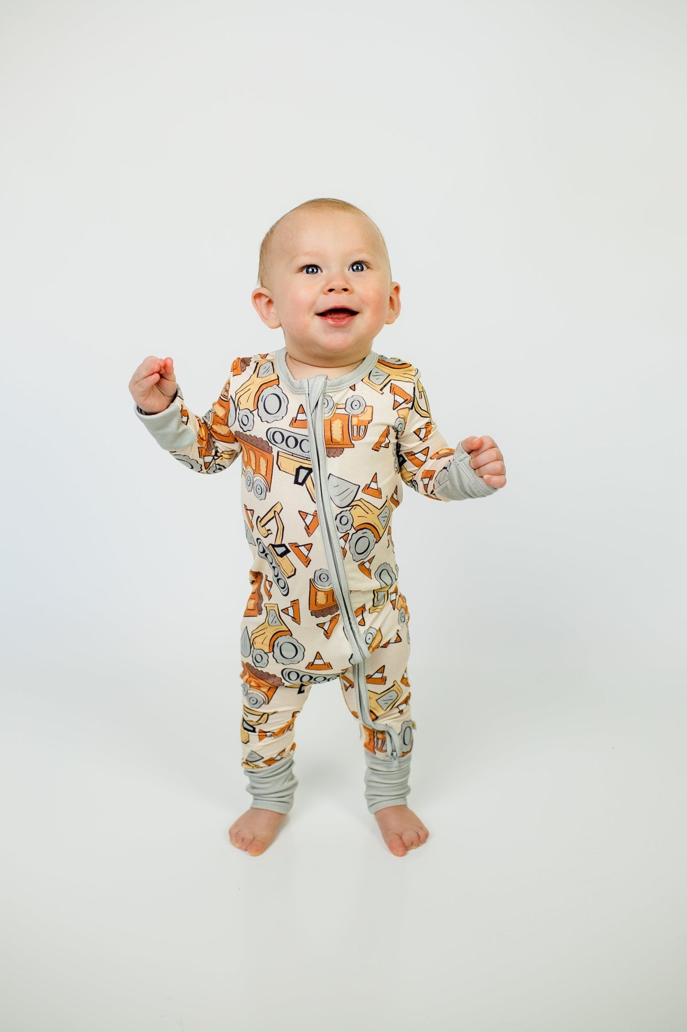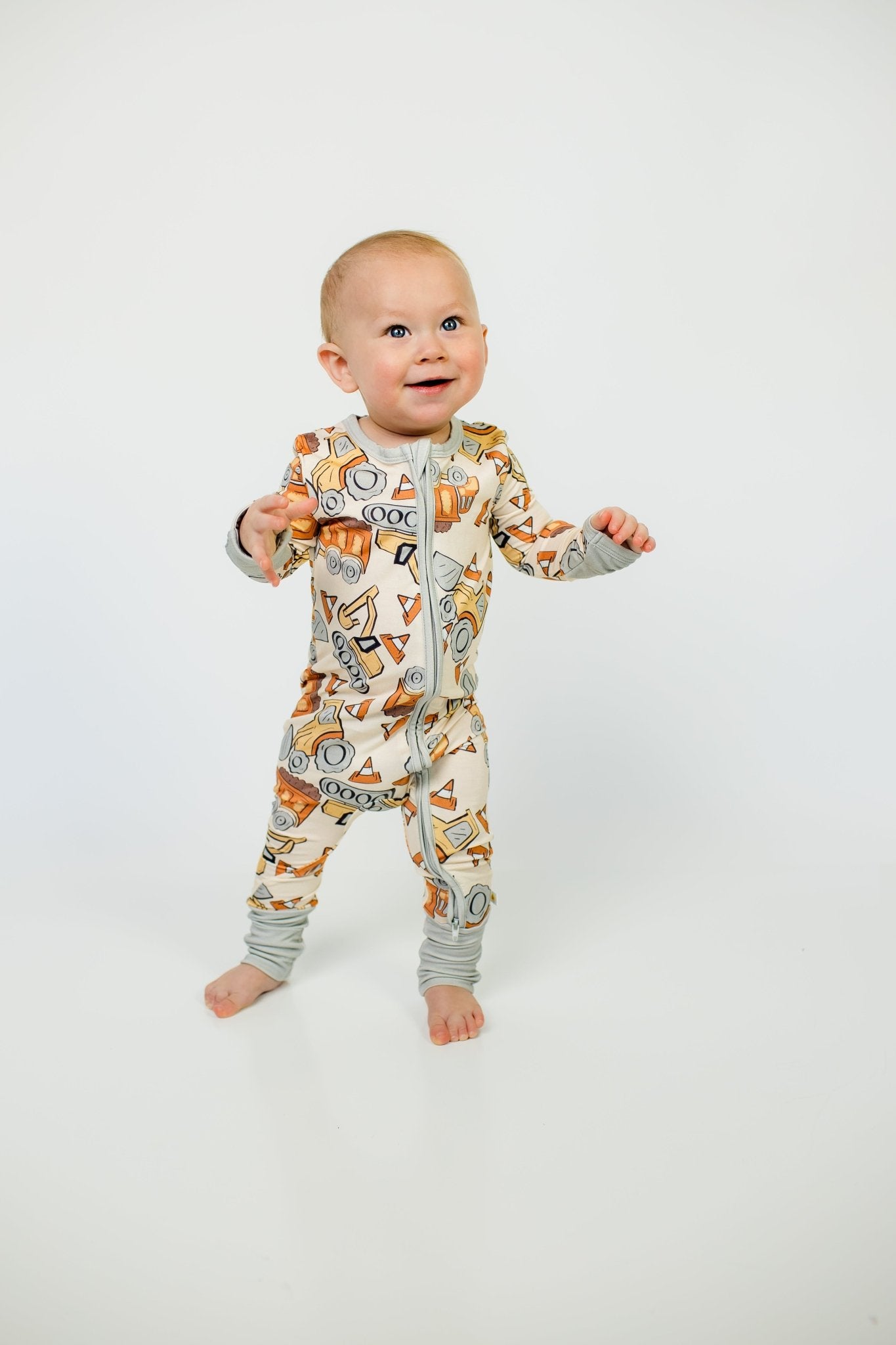 Introducing our "Bedtime Bulldozers" Zippy Onesie, a perfect blend of comfort and style for your little one. Embrace the ease of diaper changes with the full-length zipper, while the soft, breathable bamboo fabric ensures warmth and serenity. The gender-neutral colors and pattern, featuring your little one’s favorite trucks, is ideal for play and rest. Durable, simple to care for, and designed for daily adventures, this onesie is a must-have in your baby's collection. Elevate your baby's comfort with the charm of "bedtime bulldozers" – where quality meets practicality.