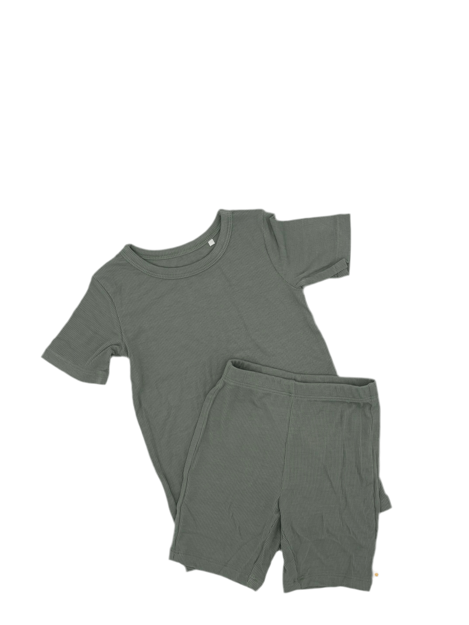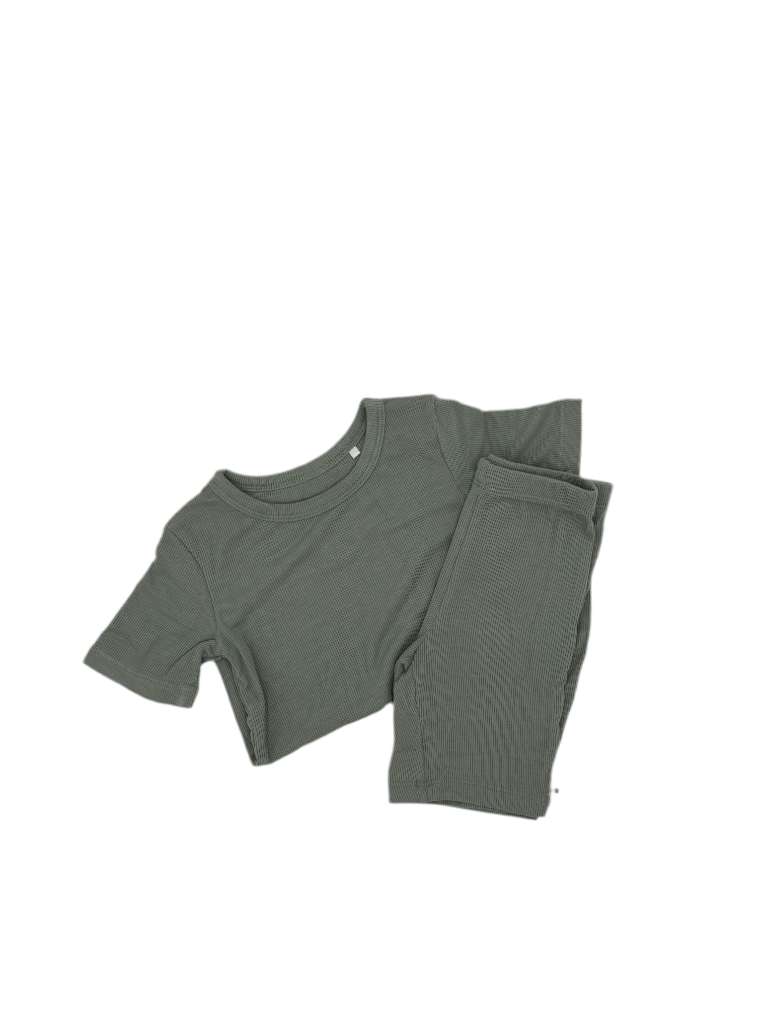 Introducing our “Solid Green Ribbed 2-Piece Shorts Set,” the perfect addition to any child's nighttime and daytime routine any day or everyday . Designed with both comfort and love in mind, these pajamas are the perfect addition to your little one’s everyday activities.