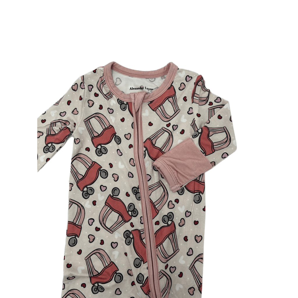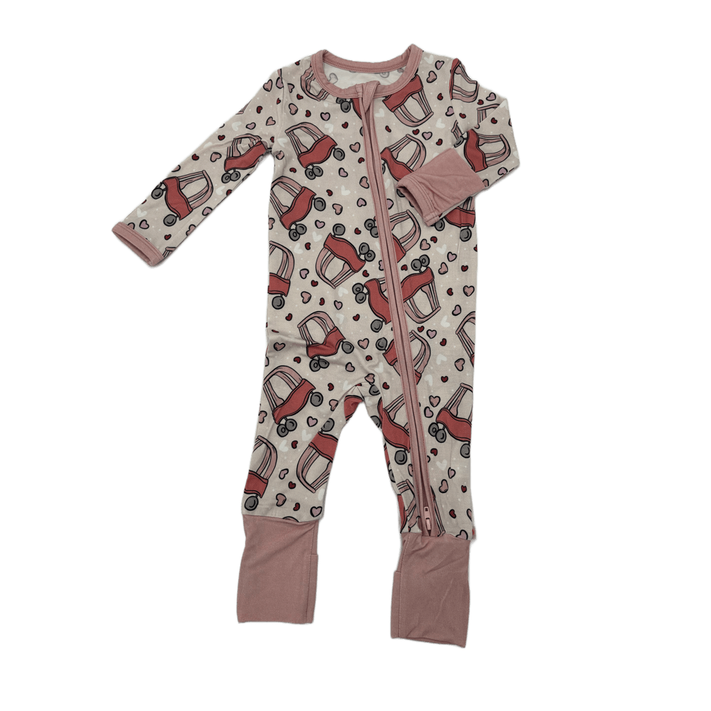 Add the "Love on Wheels" Zippy Onesie to your little one's attire and embrace the fusion of delightful design and functional finesse.