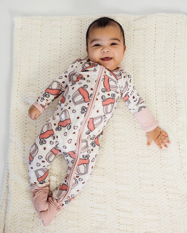 Swaddle your little one in the loving touch of our "Love on Wheels" Zippy Onesie, offering them the comfort to explore and rest in ultimate softness. Welcome the ease of our full-zip design into your life, letting you enjoy more precious moments with less fuss.